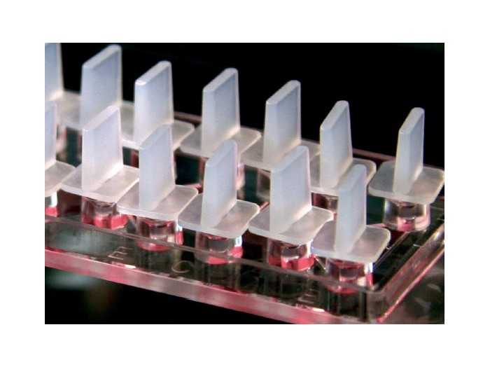 搭配微量分注器使用于兩側(cè)60 μL儲(chǔ)液槽中制造出化學(xué)物質(zhì)的線性濃度梯度,此時(shí)嵌入在儲(chǔ)液槽中間觀察管道基質(zhì)膠中的細(xì)胞即處于一穩(wěn)定的線性濃度梯度培養(yǎng)環(huán)境中。